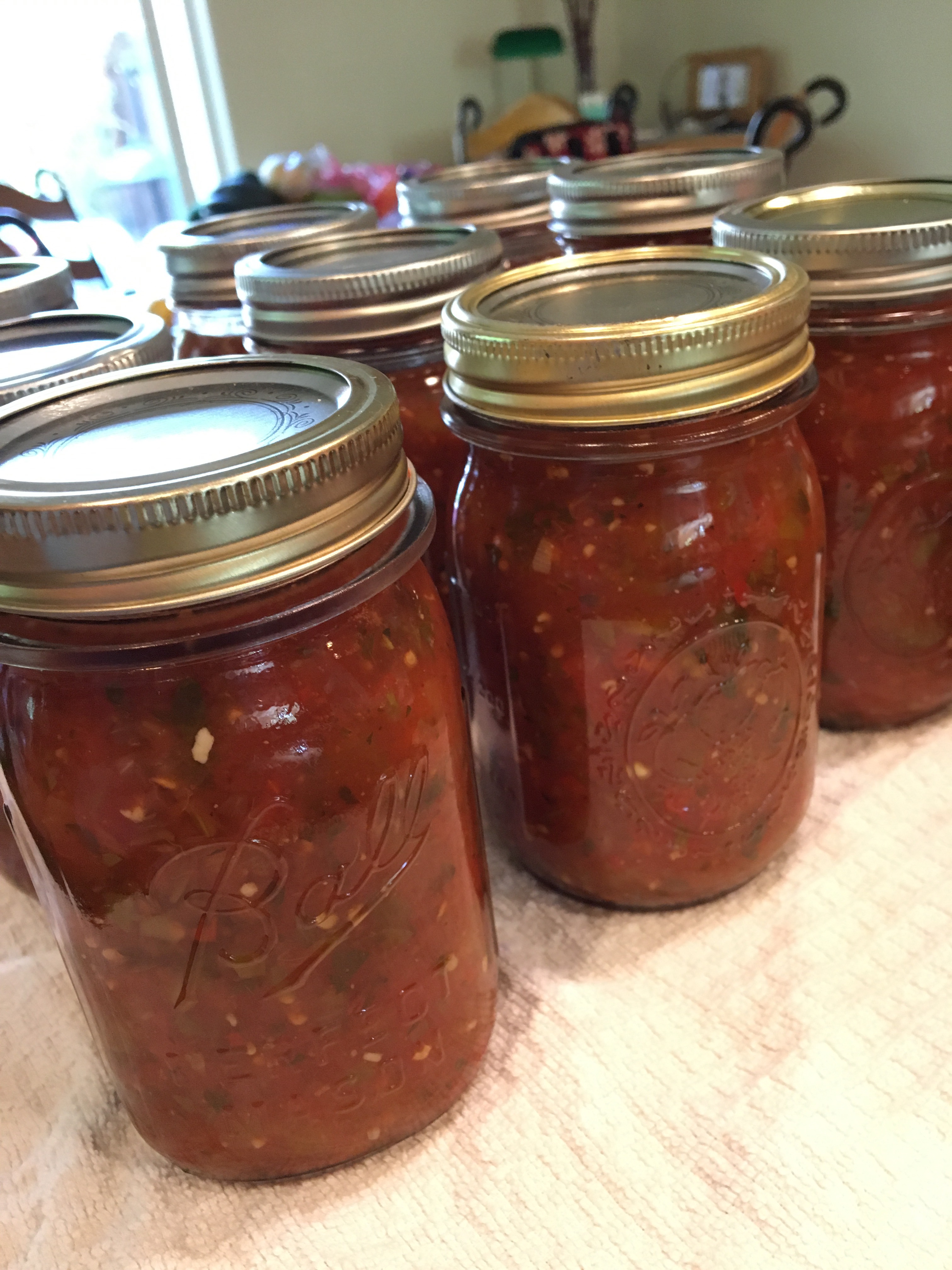 Ive recently descoved the love of canning my own salsa. Every late summer Ill can my stewed italian tomatoes and tomato sauce- but salsa comes out so nice. I do not make it spicy hot. Heat can be added at serving time for me.