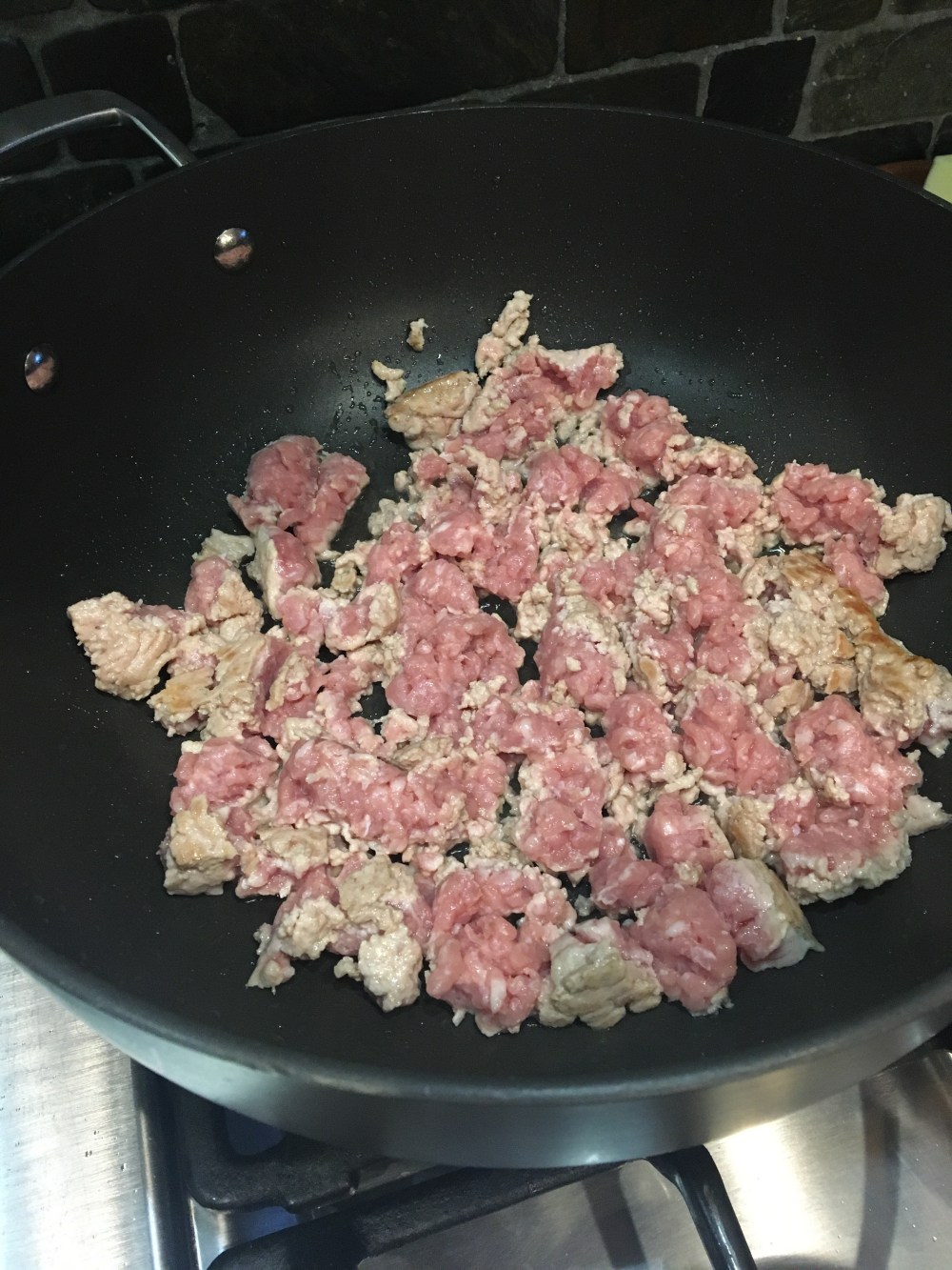 Brown meat breaking apart as it browns. Set aside in a separate bowl.