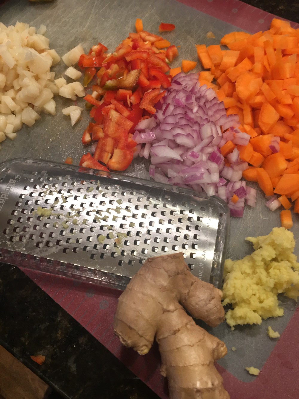 Bring oil hot in pan again and add all vegetables and sauté for 7-10 minutes until onion wilts.