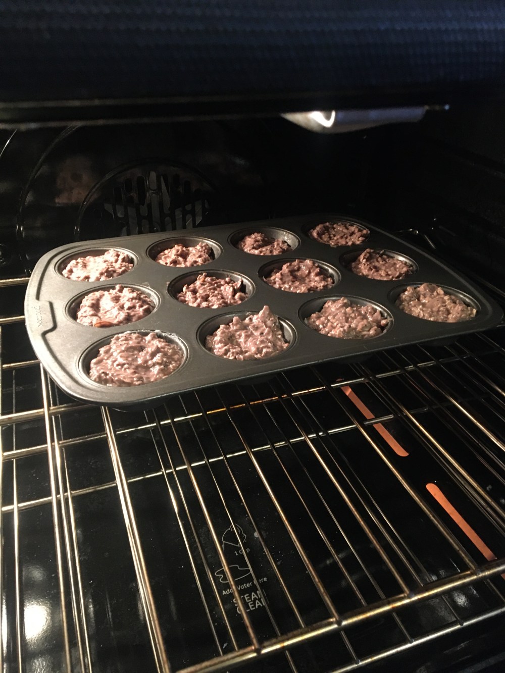 Mix all and spoon into coconut oiled muffin pan