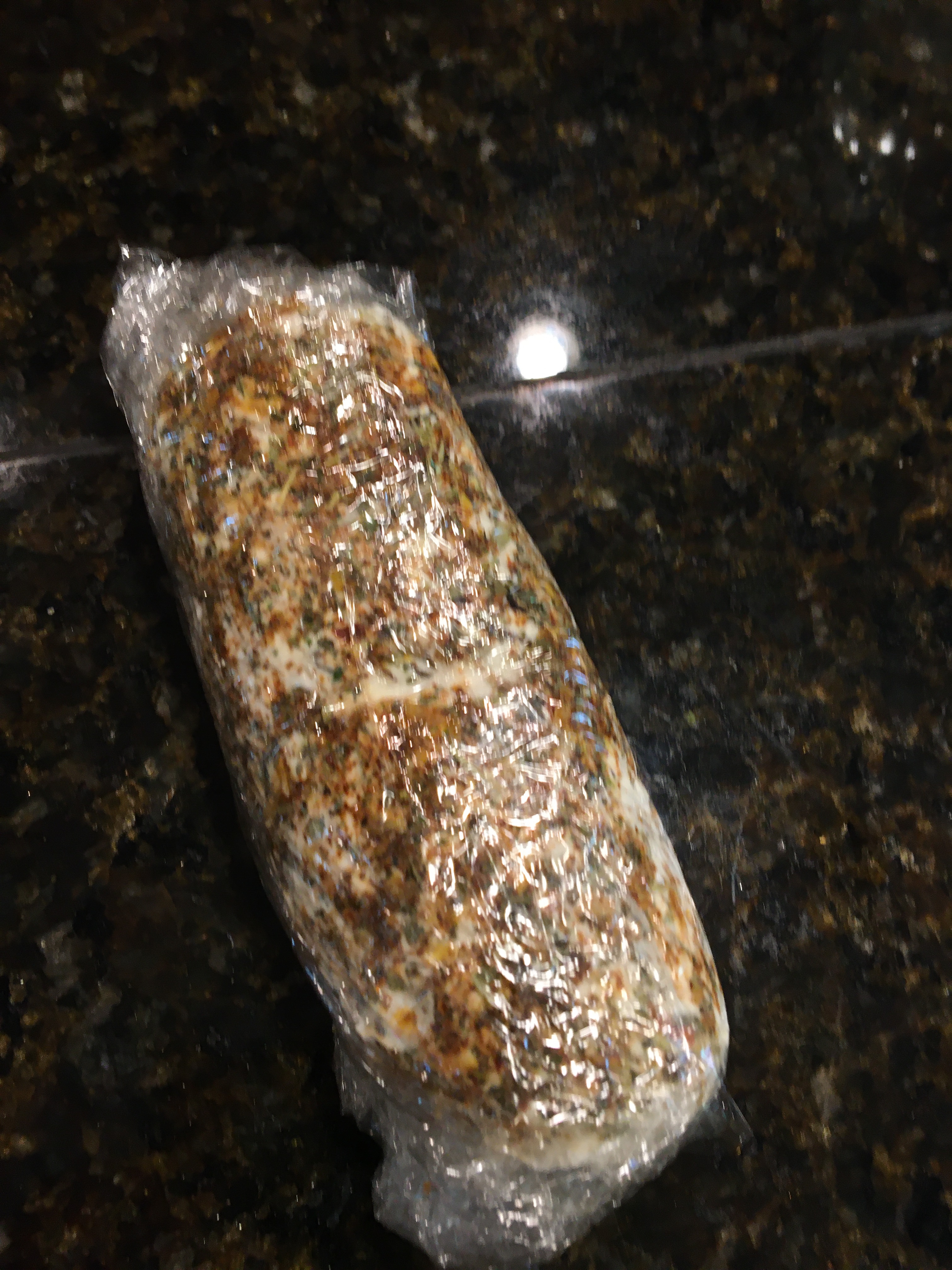 Unwrap and gently form into a log. Then roll into the herb mixture.