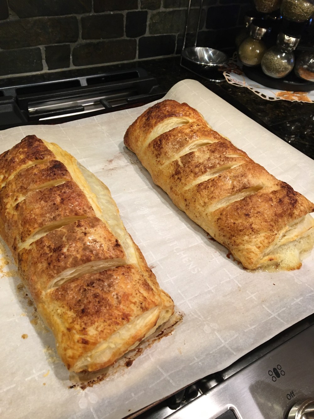 Simple puffed pastry dough from the freezer makes this an easy so tasty desert.