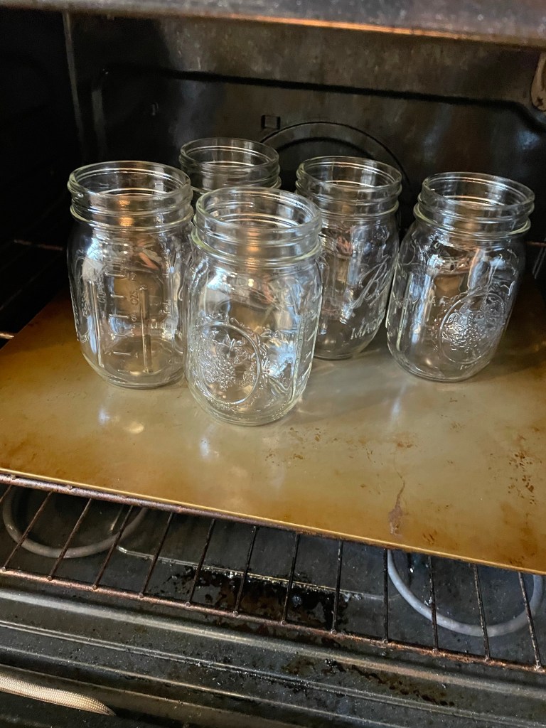 Washed and dried jars, sealing lids and rings. A good fine mesh drainer. Potato masher. Ladle that can take hot liquid. High temp large spoon or spatula. Canning funnel. (Mine is a antique from Jasons grandmother) large pot to water bath. A smile and 1 hour.